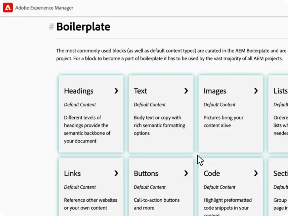 코어 웹 바이탈(Core Web Vitals)이 우수한 고성능 경험을 구축하는 데 최고의 발판이 되는 Adobe 보일러플레이트 코드를 사용해 개발을 신속하게 시작해 보세요. 프로젝트를 수월하게 시작하고, 불필요한 코드를 줄이고, 페이지 로딩 시간을 단축할 수 있습니다.