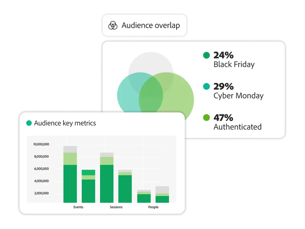 시간 경과에 따른 특성, 행동 등을 바탕으로 고객을 정의 및 분석하여 실질적인 인사이트를 확보하고 공유한 다음, 다양한 Adobe 제품에서 활성화하고 통합 관리하세요.