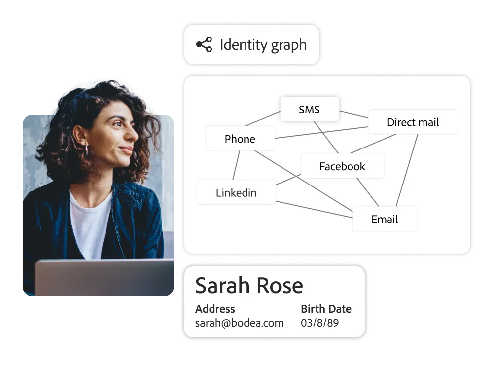 • 그래프 기반 연결. 여러 채널과 디바이스의 ID를 하나의 개인 ID에 통합하여 과거 데이터를 수정할 수 있습니다.
