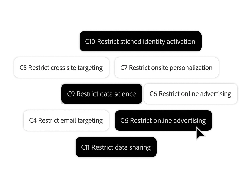 동의 관리, 특허받은 데이터 레이블 지정, 정책 생성, 데이터 사용 규정 시행을 위한 툴을 활용해 데이터 및 분석이 개인정보 관리 정책을 지속적으로 준수하도록 할 수 있습니다.