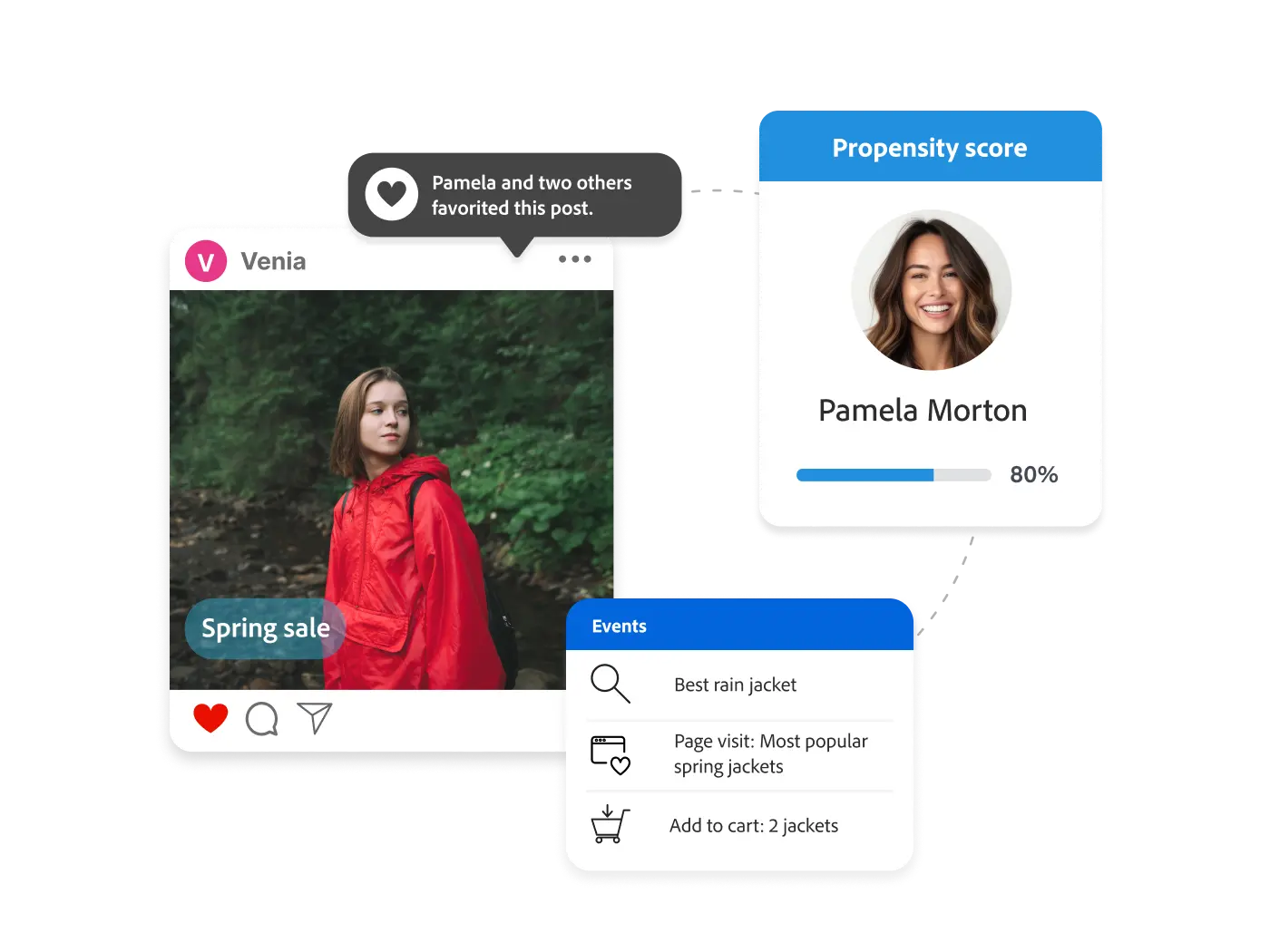 - 오디언스 최적화. 예측 및 오디언스 추정 툴을 사용하여 성향 등의 목표에 따라 타겟팅 오디언스를 자동으로 생성하거나 기회를 파악합니다. 이를 통해 데이터 기반의 타켓팅 결정을 내릴 수 있습니다.